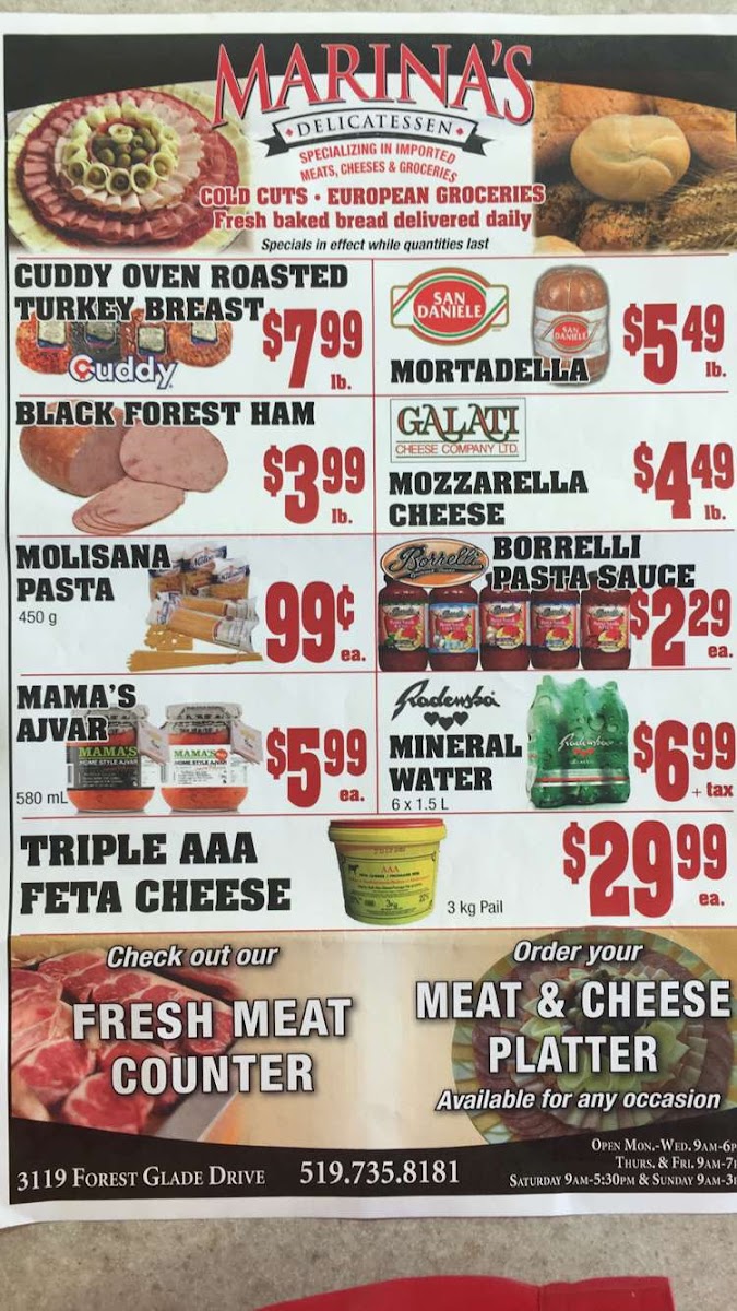 Marina's Deli Menu